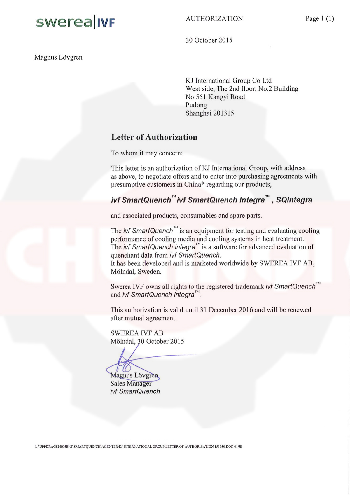 瑞典IVF代理證書
