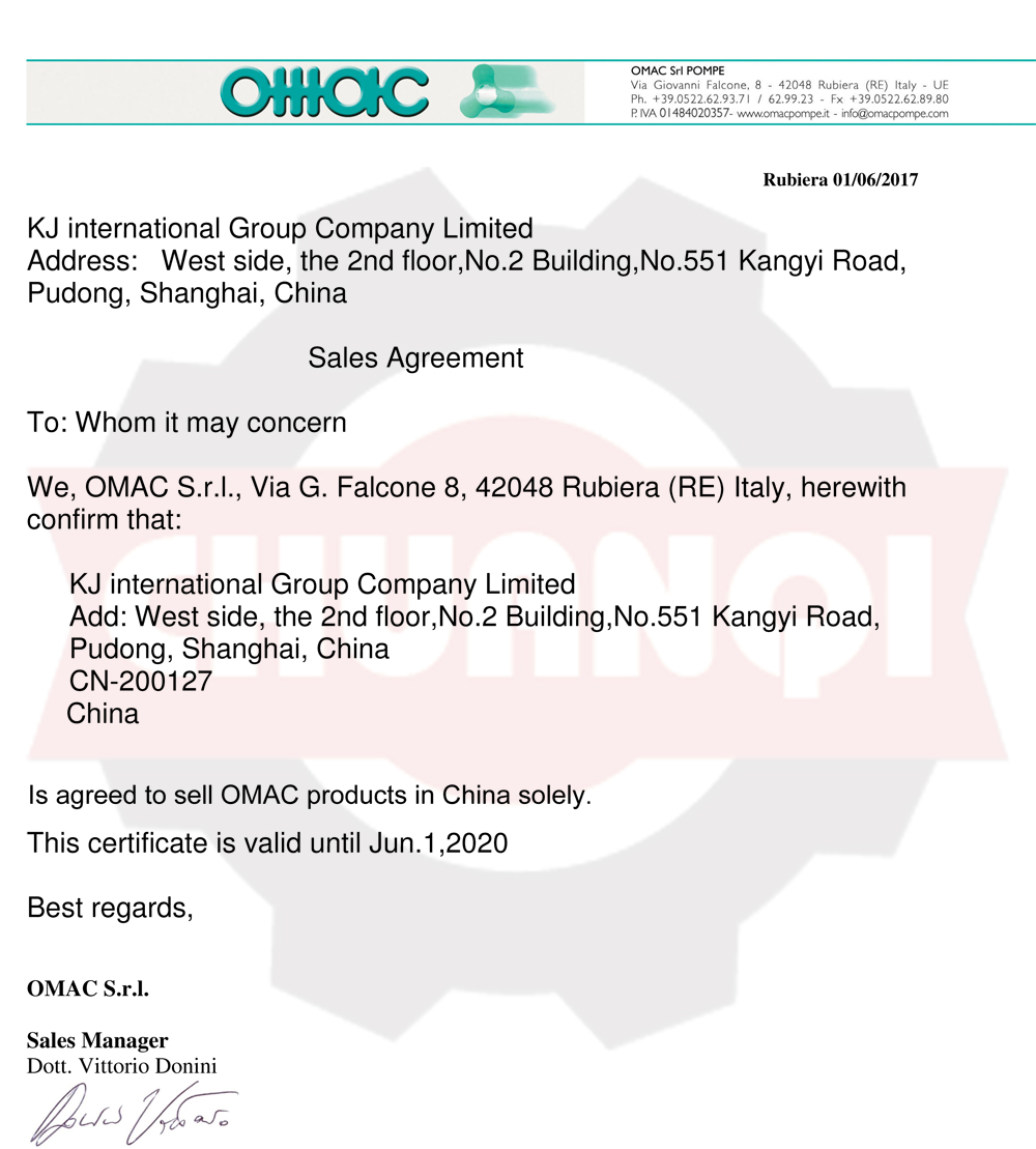 意大利OMAC代理證書