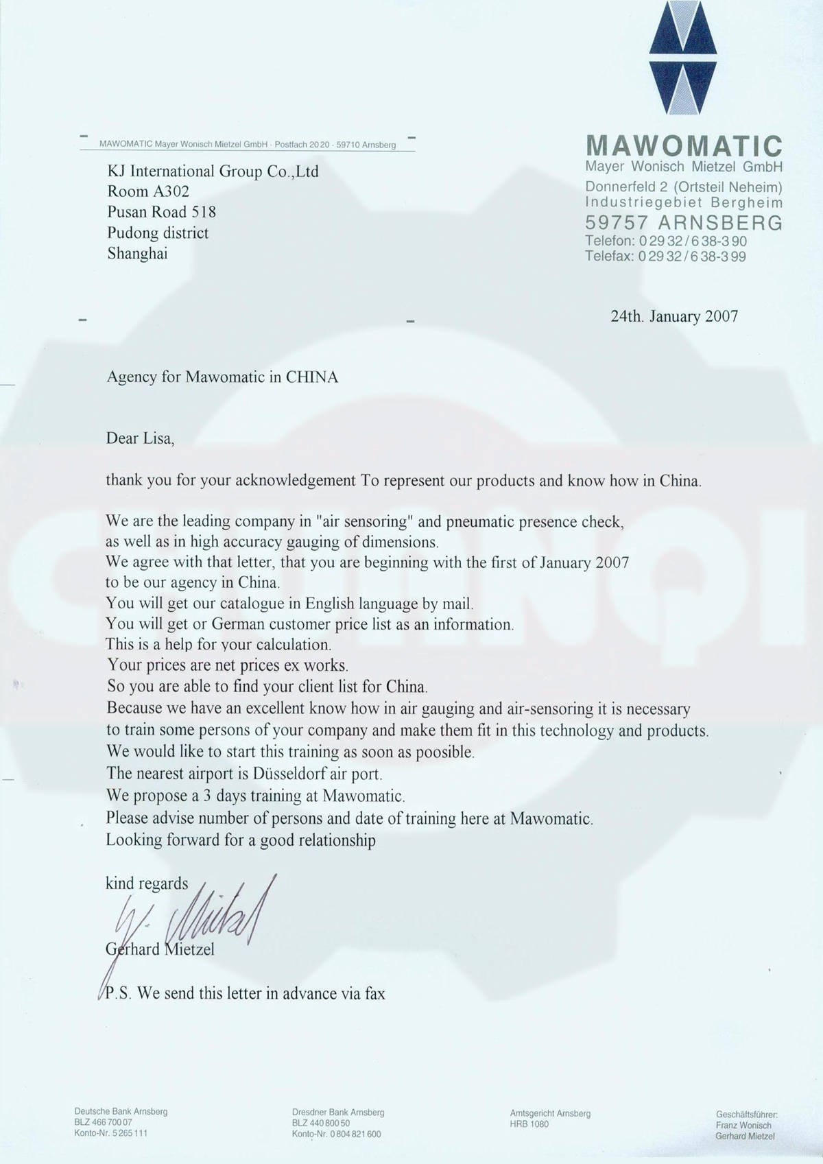 德國MAWOMATIC代理證書