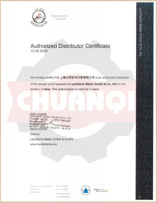 德國Bader-Lacke貝德代理證書